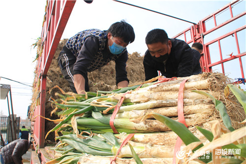 “莱州丰裕农业专业合作社年前曾向武汉销售过一批大葱,通过反馈得知武汉对铁杆大葱的质量非常认可,我们城港路街道于3月初着手准备,向合作社采购30吨铁杆大葱,捐赠武汉。”城港路街道组织委员刘振表示。