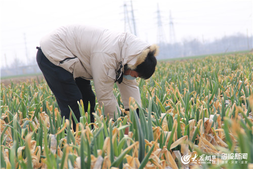 莱州丰裕农业专业合作社理事长高岭说:“运输问题解决后,我们3月初开始着手准备,因为联系不到刨葱的机械,合作社党员主动请缨,成立‘刨葱小分队’,带领60多名合作社社员用手拔了4天,将30吨大葱从地里刨出来捆好,准备装车。”