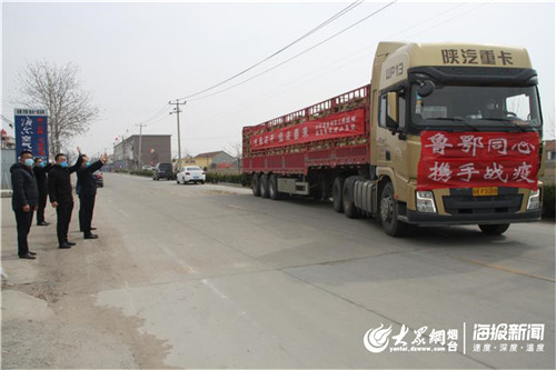 大众网·海报新闻烟台3月12日讯 (记者 孙国栋 通讯员 刘洁) 一方有难,八方支援。3月12日,一辆挂着“鲁鄂同心 携手战疫”的运输车从莱州市城港路街道海村丰裕农业专业合作社出发,满载饱含莱州人民情谊的30吨大葱,驰援武汉抗疫一线。